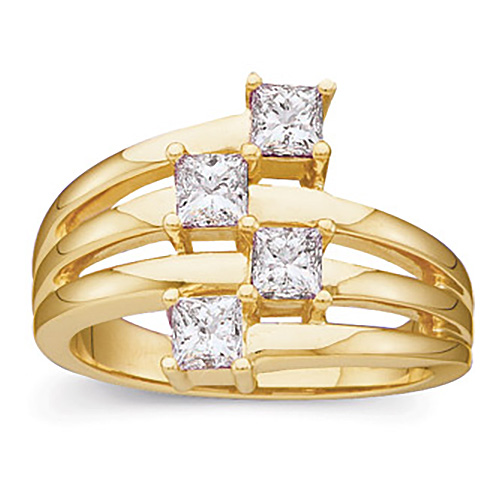This contemporary 14kt yellow gold diamond right hand ring features 7/8 CT total weight of diamonds. Ring weight: 6.94 grams. Comes with four 3.25mm square diamonds.