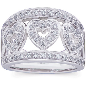 This gorgeous 14kt white gold diamond accented fashion heart ring features 1/2 CT total weight faceted diamonds. The diamonds are set in a polished 14kt white gold setting and weighs 6.06 DWT (9.42 grams).