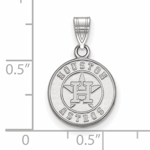 This very small Houston Astros pendant is made of polished 14k white gold. Pendant size: 12mm x 12mm. Officially licensed MLB jewelry. Fits up to a 3mm wide chain. Weight: 1.1 grams. Made in the USA.