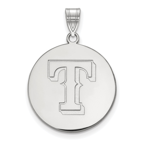 The Texas Rangers disc pendant is made of polished 14k white gold. Item length: 19mm, width: 19mm. Officially licensed MLB jewelry. Weight: 4.0 grams. Made in the USA. Fits up to a 4mm chain.