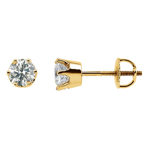This pair of 14kt yellow gold threaded round diamond stud earrings has two .37 ct round genuine diamonds. Diamond color G-H, clarity SI2-SI3. These earrings weigh 1.17 grams.