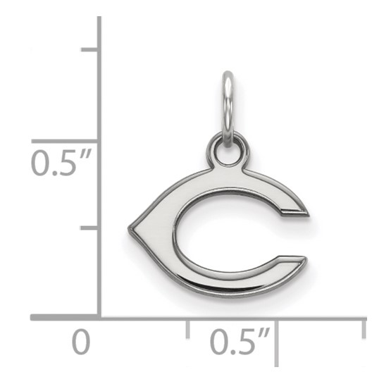 This tiny Cincinnati Reds C pendant is made of polished 14k white gold. Pendant size: 10mm x 7mm. Officially licensed MLB jewelry. Fits up to a 3mm wide chain. Weight: 0.5 grams. Made in the USA.