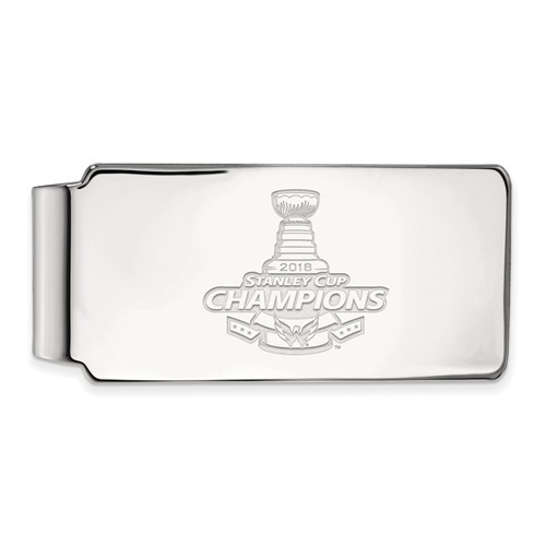 Washington Capitals 2018 Stanley Cup champions money clip is made of polished sterling silver. Laser-cut and rhodium-plated. Officially licensed jewelry. Weight: 19.1 grams. Made in the USA.