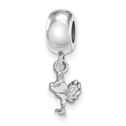 Extra small Virginia Tech HokieBird dangle bead is made of polished sterling silver. Charm width: 1/4in, height: 3/8in. Officially licensed jewelry. Fits all major modular bracelet brands. Weight: 2.8 grams. Made in the USA.