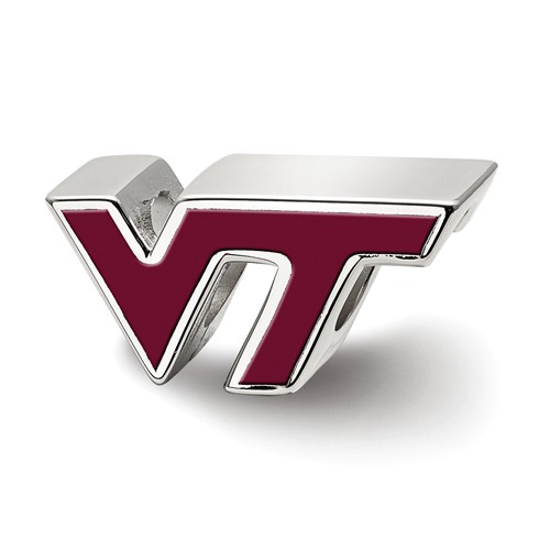 Virginia Tech VT enamel bead is made of polished sterling silver. Bead length: 15.8mm, width: 7.8mm. Officially licensed jewelry. This bead fits all major modular bracelet brands. Made in the USA.