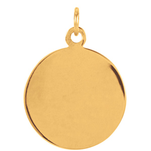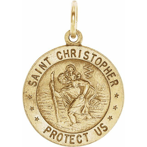 This small round St. Christopher medal is made of polished 14k yellow gold. Dimensions: 15mm in diameter. This medal is smaller than a dime. Inscription: SAINT CHRISTOPHER PROTECT US. The jump ring measures 1.7x2.0mm. We recommend a chain no wider than 1.5mm. Weighs 1.25 grams. Please note: weight is approximate, actual weight may vary. Chain not included.