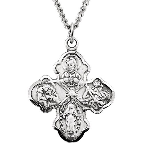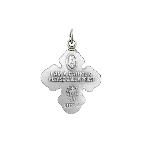Four way medal is made of antiqued sterling silver. 18-inch sterling silver curb chain. Medal dimensions: 21mm x 17.25mm. Weighs 1.71 grams. Please note: weight is approximate, actual weight may vary. Available while supplies last.