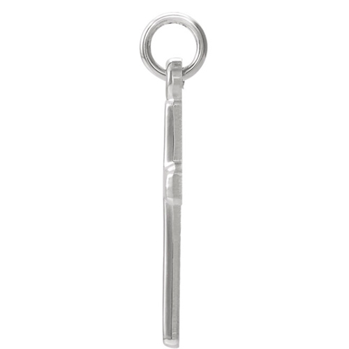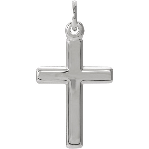 Polished platinum cross. Dimensions: 16.5x12mm. This item is smaller than a dime. Weight: 1.56 grams. Please note: weight is approximate, actual weight may vary.Bail size: 2.2mm x 2.5mm; we recommend a chain no wider than 2.0mm. Chain not included.