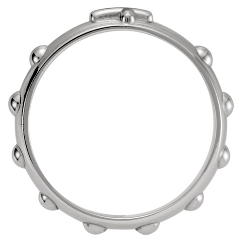 This slender rosary ring is made of solid 14k white gold. Width: 2.5mm. Weight: 2.92 grams. Please note: weight is approximate, actual weight may vary. Weight listed for size 7. Standard fit. Made in USA.