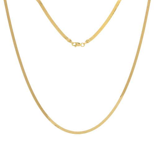 This solid 14k yellow gold 20 inch herringbone chain has a lobster clasp. Polished finish. Width: 2.7mm. Average weight: 5.1 grams. Made in Turkey. Ships from USA.