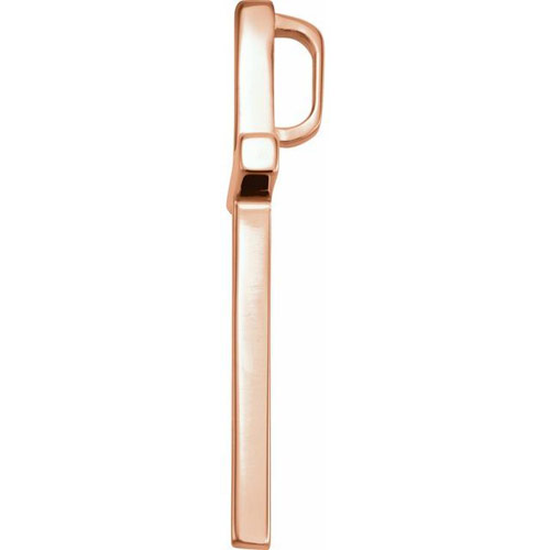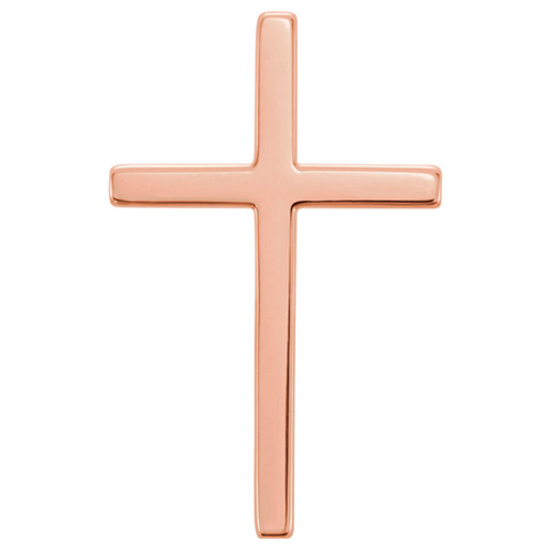 Small polished 14k rose gold smooth cross pendant has a hidden bail. Dimensions: 17.7mm x 11.2mm. This cross is the size of a dime. Bail accommodates up to a 1.2mm wide chain. Weight: 0.7 grams. Please note: weight is approximate, actual weight may vary. Made in USA.