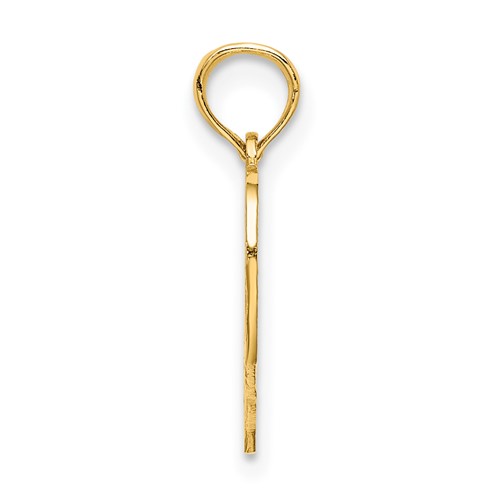 Open back, heart shaped 40th anniversary charm is made of polished 14k yellow gold. Item size: 1/2in x 1/2in. Fits up to a 3mm wide chain. Weight: 0.5 grams. Made in Peru. Ships from USA.