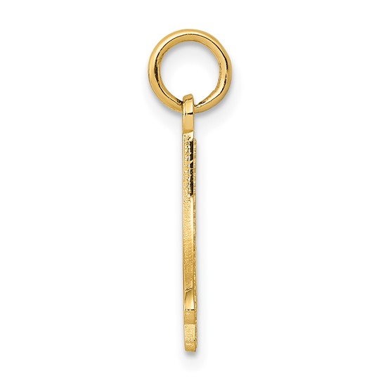 This small 14k yellow gold ice skate pendant has a textured finish. Item size: 1/2in x 1/2in without bail. Fits up to a 2.5mm wide chain. Weight: 0.7 grams. Made in USA.