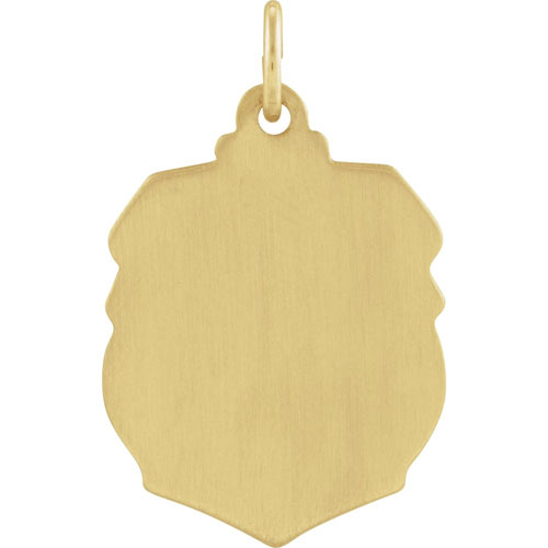 Petite St Michael medal is made of polished 14kt yellow gold. Dimensions: 16.5mm x 14.25mm. This item is slightly smaller than a dime. Weighs 1.68 grams. Chain not included. Please note: weight is approximate, actual weight may vary. One of the archangels, St. Michael is the popular patron saint of policemen and radiologists.