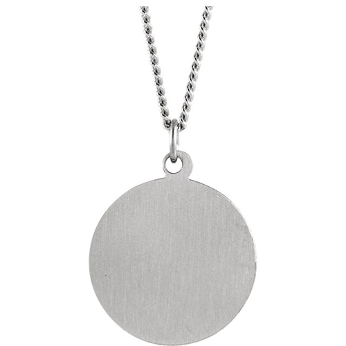 St Peregrine medal is made of antiqued sterling silver and includes an endless 18in curb chain (no clasp). Diameter: 18mm. This item is the size of a dime. Weighs 2.23 grams. Please note: weight is approximate, actual weight may vary. St. Peregrine is the patron saint of cancer patients.