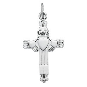 Polished sterling silver claddagh pendant with 18-inch chain. Pendant size: 23x15mm. Weighs 2.90 DWT (4.51 grams). Please note: weight is approximate, actual weight may vary.