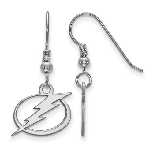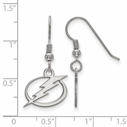 These Tampa Bay Lightning wire dangle earrings are made of polished sterling silver. Charm length: 1/2in, width: 5/8in. Officially licensed jewelry. Weight: 1.5 grams. Made in the USA.
