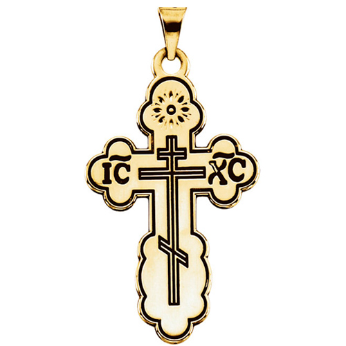 Polished 14kt yellow gold cross. Dimensions: 26x17mm. Weighs 2.07 grams. Please note: weight is approximate, actual weight may vary. Chain not included. Bail size: 2.75mm x 3.5mm. We recommend a chain no wider than 2mm.