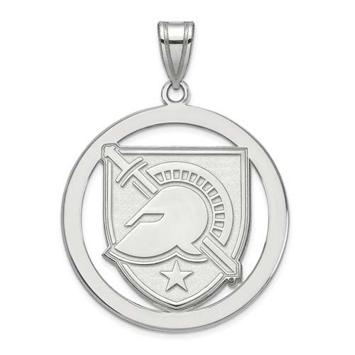 US Military Academy at West Point logo circle pendant is made of polished sterling silver. Item length: 1in, width: 1in. Fits up to a 4mm wide chain. Officially licensed jewelry. Weight: 3.9 grams. Made in the USA.