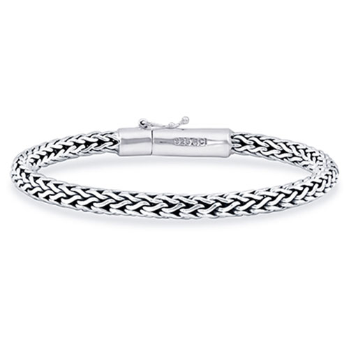 Phillip Gavriel ladies' sterling silver wheat bracelet has a fleur de lis lobster clasp. Bracelet length: 7.5in. Width: 5.8mm. Rhodium-plated. Imported.