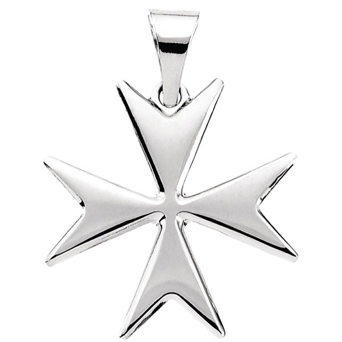 Solid 14k white gold maltese cross pendant has a polished finish. This item is the size of a dime. Fits up to a 3mm wide chain. Approximate weight 1.99 grams. Made in USA.