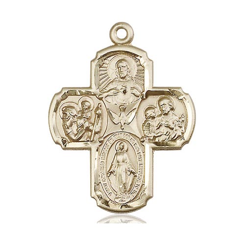 This large die struck, hand-engraved five way medal is made of gold plated sterling silver. Dimensions: 1 3/8in x 1in. This item is larger than a quarter. Made in USA.