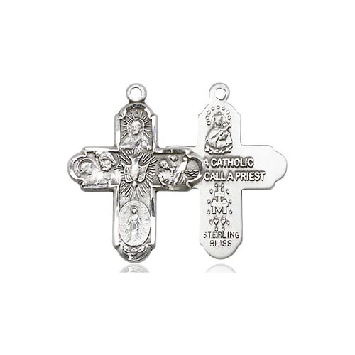 This ladies' sterling silver five way medal is die struck and hand engraved. Dimensions: 3/4in x 5/8in. This item is the size of a penny. Fits up to a 2.5mm wide chain. Made in USA.