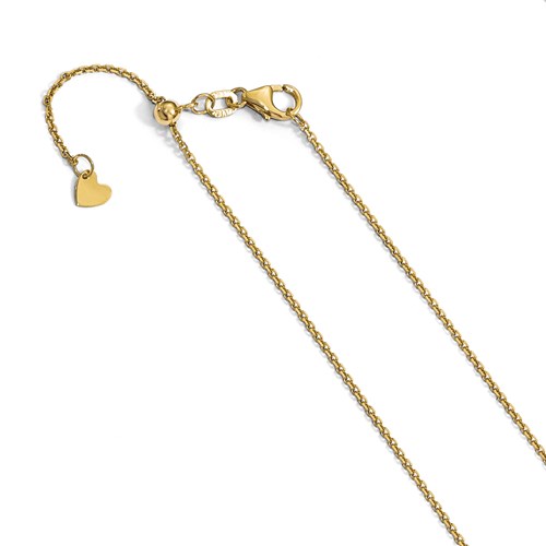 Ladies' 14k yellow gold adjustable diamond-cut cable chain is made in Italy. Chain width: 1.25mm. The chain length is adjustable from 16in to 22in. Lobster clasp. Enjoy the manufacturer's lifetime guarantee. Manufacturer will repair or replace this chain if broken, damaged or defective. Guarantee is for the original owner and cannot be transferred. Approximate weight: 3.2 grams.
