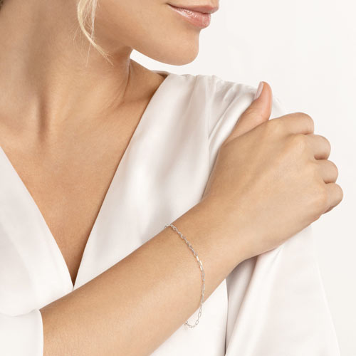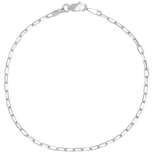 14k white gold ultra slender paper clip link bracelet has a lobster clasp. Bracelet length: 7.25 inches. Link width: 1.95mm. Approximate weight: 1.4 grams. Made in Turkey. Ships from USA.