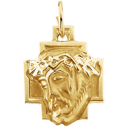 Hollow face of Jesus medal is made of polished 14k yellow gold. Dimensions: 18mm x 16mm. Weight: 2.30 grams. Please note: weight is approximate, actual weight may vary. Chain not included.