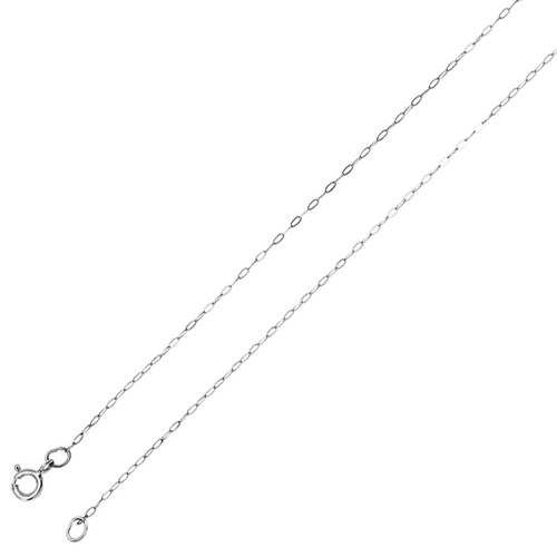 Polished 14kt white gold cable chain has a springlock clasp. Width: 0.50mm. Length: 16in. Weighs 0.34 grams.