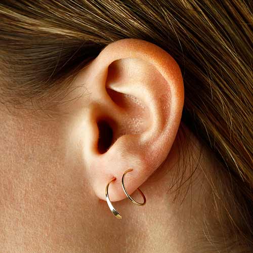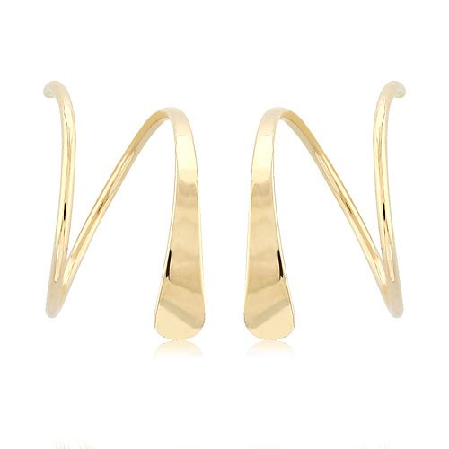 14k yellow gold tapered wire cuff threader earrings have a smooth polished finish. Earring size: 1/2in x 1/2in. Approximate weight: 0.7 grams. Made in USA.