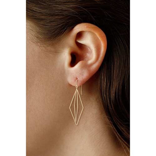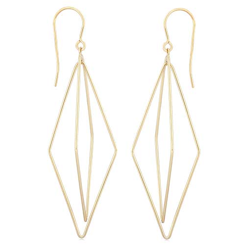 14k yellow gold lantern earrings have French wire backs. Earring size: 7/8in x 2 1/4in. Approximate weight: 2.9 grams. Made in USA.