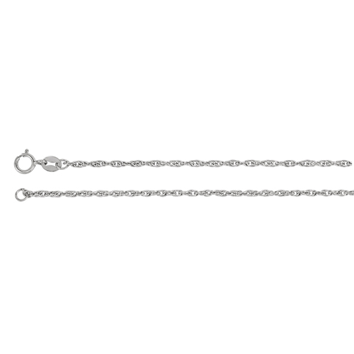 Polished 14kt white gold chain. Width: 1.75mm. Length: 18 inches. Weighs 2.12 DWT (3.30 grams) Please note: weight is approximate, actual weight may vary.