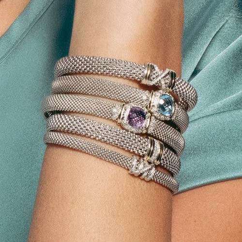 Phillip Gavriel sterling silver popcorn cuff bangle bracelet has .10 carat total weight diamond accents. 18k yellow gold bar accents. One size fits most women. Bracelet width: 7.7mm. Diamond clarity SI1, color G-H. The bracelet has a polished finish. Made in Italy. Ships from USA.