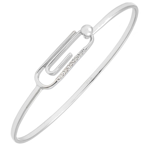Micro pave diamond paper clip bracelet is made of sterling silver. One size fits most women. Hook clasp. Charm size: 8mm x 24mm. Genuine natural round single cut diamonds, .05 carat total weight, I1 clarity, I-J color. Made in China. Ships from USA.