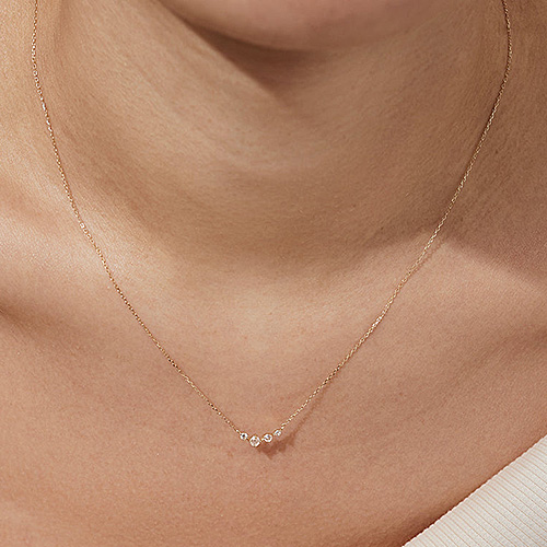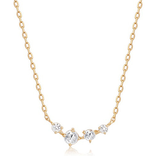 Aurelie Gi JEAN 14k yellow gold rose cut white sapphire necklace has a spring ring clasp. Round white sappire sizes: 1.4mm, 1.7mm, 2mm and 2.5mm. 14k yellow gold slender cable chain is adjustable in length from 16 to 18 inches. Made in China. Ships from USA.