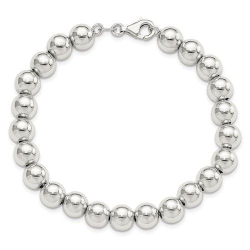Sterling silver 7.5in hollow bead bracelet has a fancy lobster clasp. Bead width: 8mm. Weight: 12.2 grams. Made in India. Ships from USA.