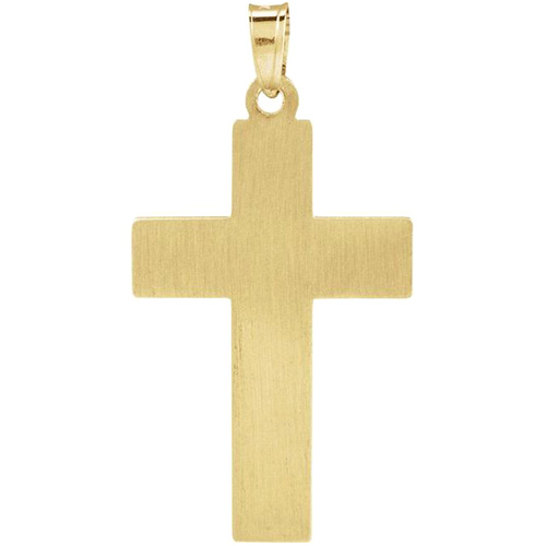 This hollow 14k yellow gold Latin cross pendant has a rosary accent. Item size: 0.66in x 1.25in without bail. Fits up to a 3mm wide chain. Approximate weight: 2.6 grams. Made in USA.