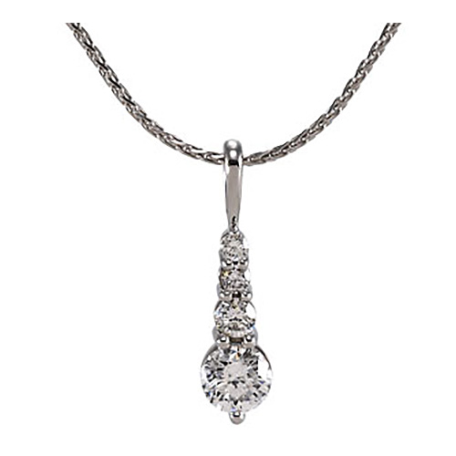 Show your sweetheart your love with this 14k white gold four-stone diamond journey pendant. Diamond details: 1 x .04CT, 1 x .05CT, 1 x .15CT, 1 x .75CT round facted full cut diamonds; color G-I, clarity I1.