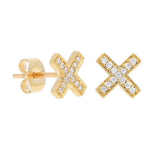 0.13 carat total weight diamond X post earrings are made of polished solid 14k yellow gold. Diamond details: 26 round full cut diamonds, SI2 clarity, G-H color. Posts with push on / pull off backs. Ships from USA.