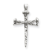 14k White Gold 1 1/4in Nail Cross Pendant with Rope