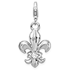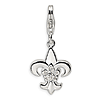 Sterling Silver CZ Fleur de Lis with with Lobster Clasp Charm