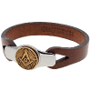 Sterling Silver 8.5in Bronze Brown Leather Masonic Bracelet
