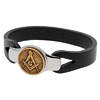 Sterling Silver Bronze Black Leather Masonic Bracelet