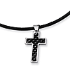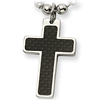 Stainless Steel 1 1/8in Carbon Fiber Cross 18in Necklace