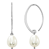 Sterling Silver Oval Freshwater Cultured Pearl Hoop Threader Earrings