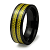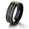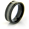 Buy black ceramic inlay rings for less. We offer black ceramic rings with carbon fiber, 14kt yellow gold and tungsten. Each ring has a brilliant, non-plated black finish. Permanently polished, and highly scratchproof.