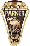 Personalize the Masonic Craftsman ring in 10kt yellow gold with stone color, wording around the stone, side emblems and engravings. Closed back, solid 10kt yellow gold. For a standard size 10, the Craftsman ring is 20mm across the widest part on top and 28mm from top of stone to bottom of ring shank. Simulated stone dimensions: 12mm x 10mm. Approximate weight: 15 grams.
