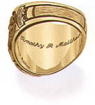 The 14kt yellow gold Patriot firefighter ring for men offers your choice of engravings and stone color. The double bezel ring offers the standard wording FIRE DEPARTMENT on the outer bezel, and SERVICE VALOR COURAGE on the inner bezel. The solid back Patriot ring is 21.4mm across the widest part on top; 30mm from top of stone to bottom of ring shank. Palm width: 6.4mm. Handcrafted in the USA. Enjoy ArtCarved's limited lifetime warranty.